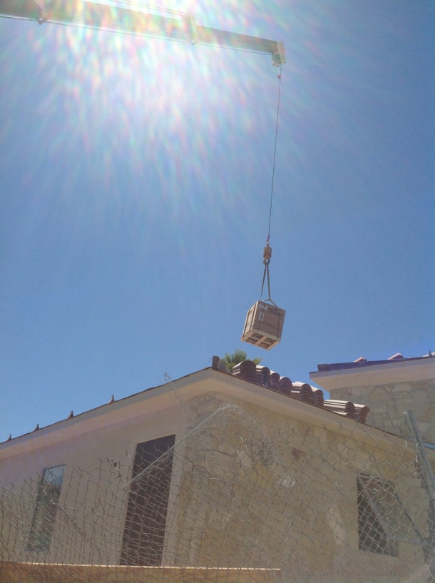 Lifting the AC units to the roof.